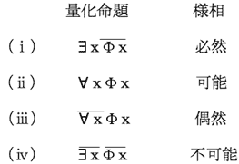 化命題とその様相との関係を述べることが懸案だったので、それに答えることでこの章を閉じることとする。 |